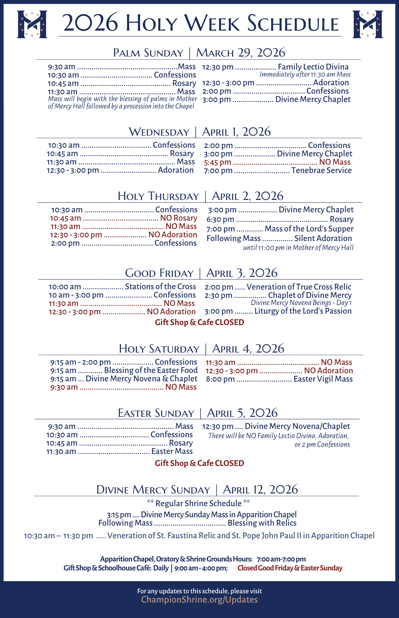 Please see below for any Shrine updates that may impact its regularly scheduled activities.